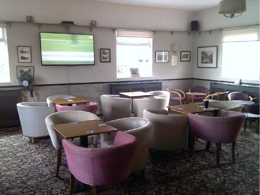 Then to right of the bar: route to eating room & Gents toilets; Ladies toilets; dart board; pool table; another TV - a bit blurred ;-)
