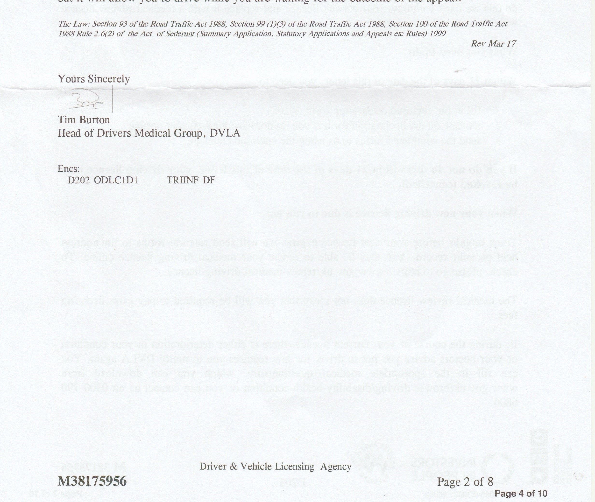 The above was 3 months ago. We recently received another (automated?) letter from "Tim Burton" of "Head of Drivers Medical Group". dated