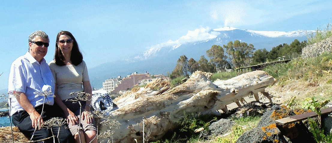 We started our holiday in Giardini Naxos, and our favorite Hotel La Riva. Other places were driven by places Samantha and ourselves wanted to visit, and plans to meet up with old friends Enrico & Matilde in Fleri, near Zefferana Etnea. So after La Riva, it was south to the lovely Somoa Beach B&B, hosted by Danielle & Carlos, not far from Siracusa. Then it was west to Scoglitti, and hotel Il Gabbiano ( the seagull ), where Enrico & Matlde joined us. We then returned north, not far from Catania Airport, staying at the nice Poggio Felice ( Happy Hill ) B&B, in Fleri, near Zefferana, and just 6 minutes walk from Enrico & Matilde's.